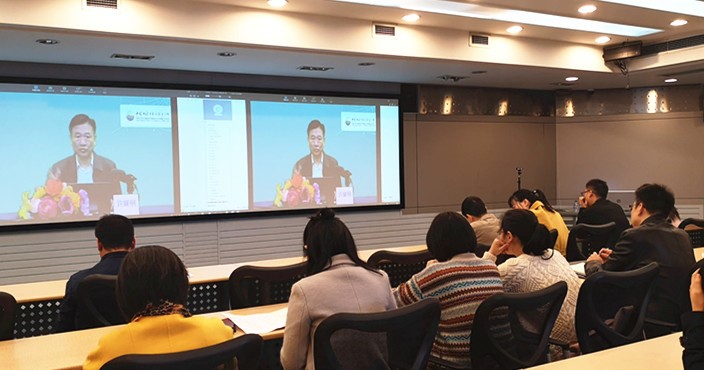 当前位置: 首页 >> 党建工作 >> 党建与主题教育 >> 正文 机关党委第七支部召开中共十九届四中全会精神专题学习会 时间:2019年11月25日 10:40 作者: 11月22日上午,机关党委第七支部在启智楼80410远程会议室召开中共十九届四中全会精神专题学习会。学习会上,中央党校(国家行政学院)许耀桐教授在北京作了《开辟“中国之治”新境界——十九届四中全会总体精神解读》的专题报告,支部全体党员通过远程视频方式参加了学习。 许耀桐教授就《中共中央关于坚持和完善中国特色社会主义制度推进国家治理体系和治理能力现代化若干重大问题的决定》产生的背景进行了介绍,并从“中国之治”致力于国家制度、“中国之治”致力于国家治理、“中国之治”具备的显著优势和“中国之治”实现的根本保障四个方面,就《决定》的主要内容进行了系统解读。 在许教授的解读下,与会党员认真学习了“中国之治”的13个显著优势和“中国之治”实现的13个根本保障。许教授的解读深入而系统,准确把握了十九届四中全会的精神和《决定》的主要脉络。大家纷纷表示,要以习近平新时代中国特色社会主义思想和中共十九届四中全会精神为指导,不断增强“四个意识”、坚定“四个自信”、做到“两个维护”,在实际工作中深入贯彻落实十九届四中全会精神,把主题教育做好,做实,为学校的改革发展努力贡献自己的力量。 上一条:机关党委第七支部召开中共十九届四中全会精神专题学习会 下一条:机关党委第七支部召开中共十九届四中全会精神专题学习会 【关闭】
