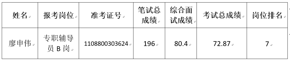 当前位置: 首页 >> 通知公告 >> 正文 太阳集团tyc122cc2024年公开招聘事业单位工作人员体检环节递补人员公告 时间:2024年07月11日 10:17 作者:李栋桦 因考生在体检环节自动放弃参加后续招聘环节,现我校专职辅导员B岗产生缺额1名。按照《重庆市属事业单位2024年第二季度公开招聘工作人员公告》,经学校研究确定进行递补,现将递补人员公告如下: 递补考生按照太阳集团tyc122cc人事处电话通知按时按要求参加体检。体检有关事宜详见2024年7月8日太阳集团tyc122cc人事处网站发布的《太阳集团tyc122cc关于公布2024年公开招聘事业单位工作人员考生成绩及体检安排的通知》。 太阳集团tyc122cc人事处 2024年7月11日 上一条:太阳集团tyc122cc拟聘用工作人员人选公示 下一条:太阳集团tyc122cc关于公布2024年公开招聘事业单位工作人员考生成绩及体检安排的通知 【关闭】